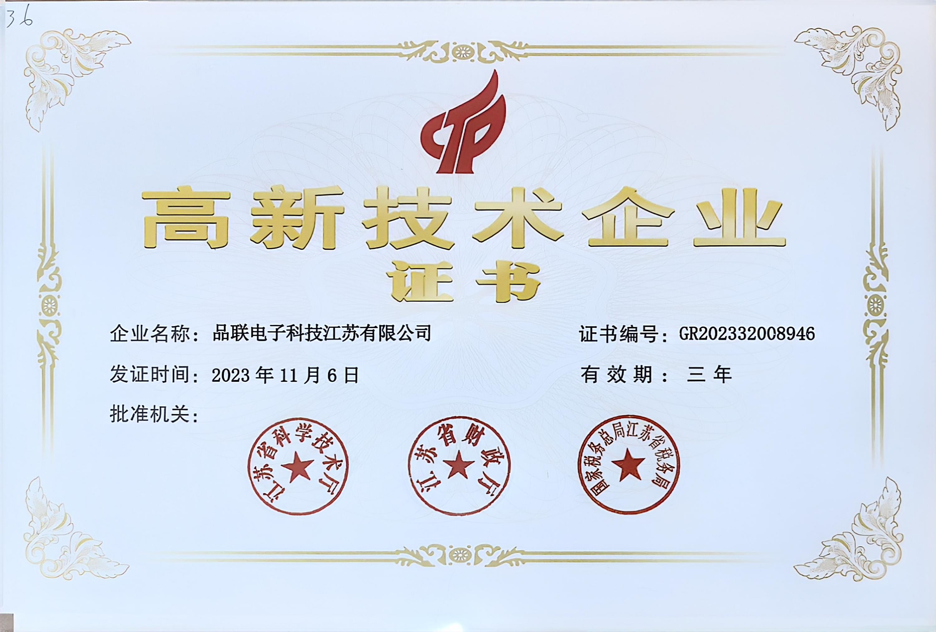 公司严格按照体系规范化管理,并取得了IATF16949、 ISO9001体系认证,生产工艺严格执行IPC620标准,以达到客户的要求并超越客户的要求。我司于2020年被评为江苏省高新技术企业,并取得了几十项实用新型专利,公司拥有管理、品保、工程、售后服务等专业的技术团队,我们致力于为客户提供高质量的产品和服务。